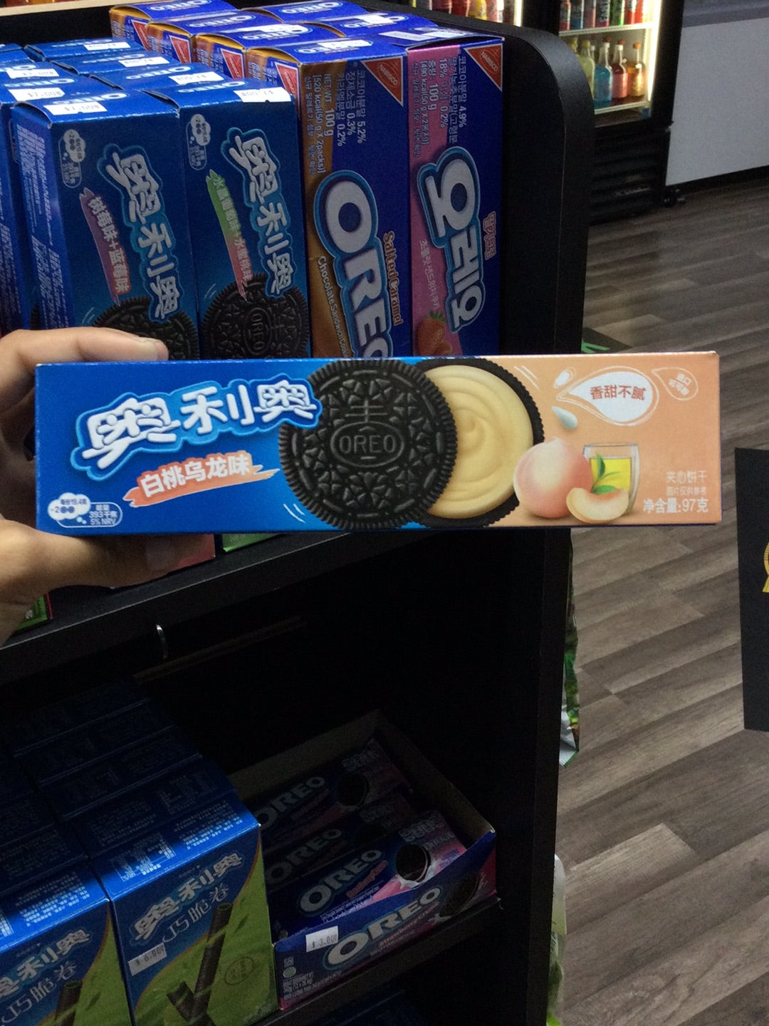 White peach and oolong tea flavored cream filling in your classic Oreo 71g